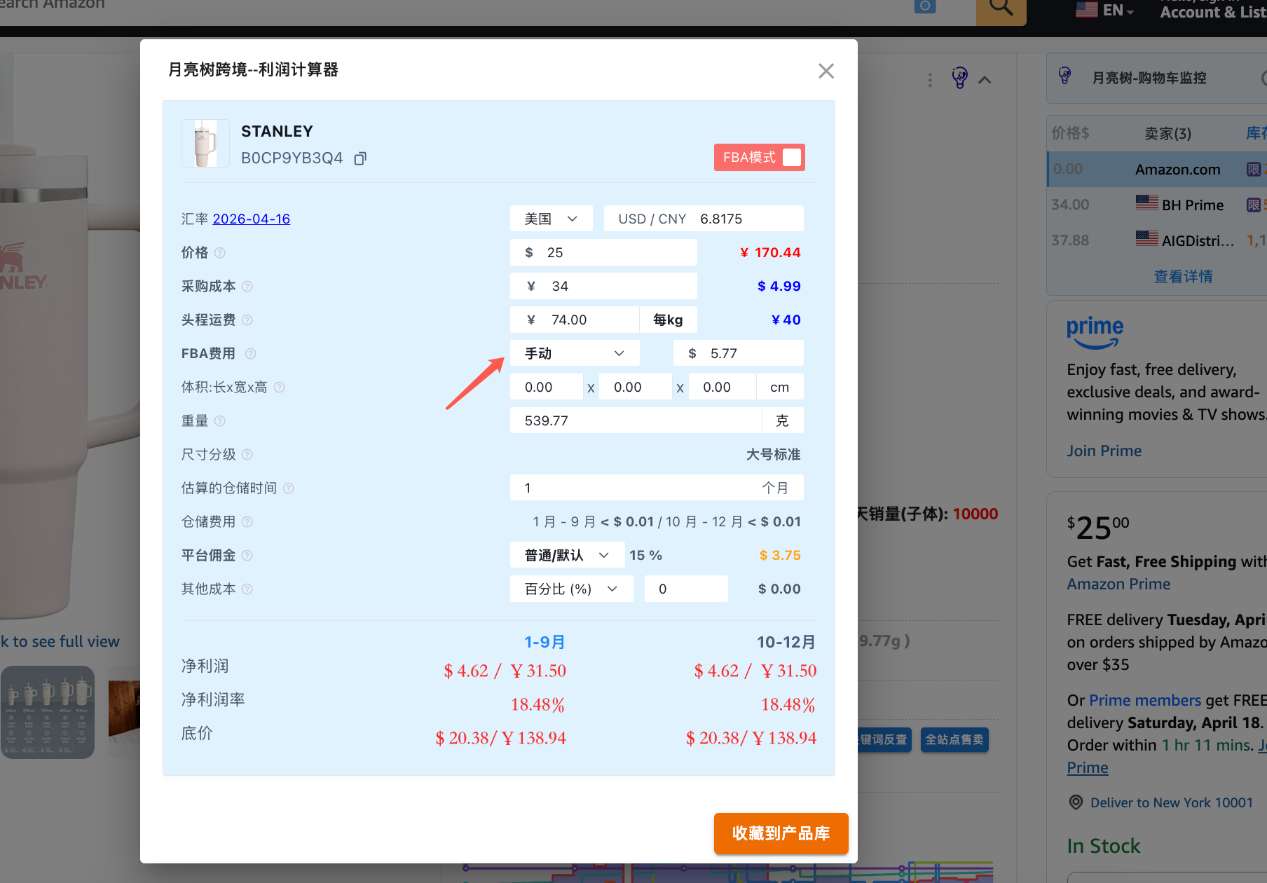 2.5.1及以前版本的月亮树跨境选品插件里面的利润计算器是更新前的,没有考虑燃油费